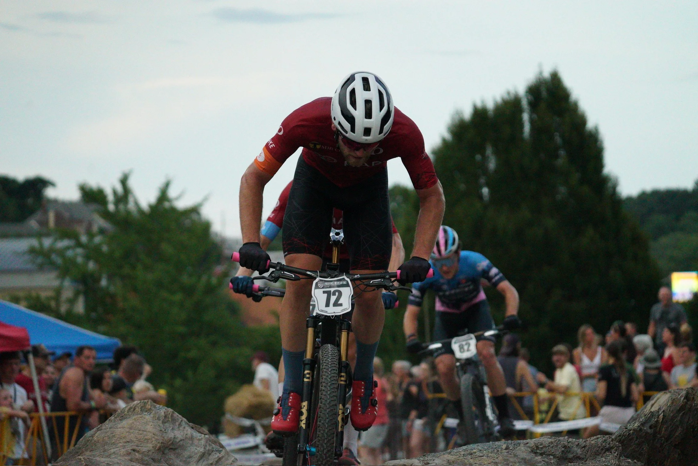Saturday’s XCO course was very different than previous years’ courses. Whereas last year had some taxing 5-8min climbs, the longest climb at Roanoke only took about 3min at race pace. The undulating terrain made for very high speeds slowed only by the East’s signature wet roots, mostly single track with a nice man-made drop and a long, paved road climb. Every race course in MTB is different and plays into different strengths and weaknesses. This course was all about efficiency. Choosing the quickest line over roots, staying off the brakes, taking the best line through corners, and using momentum to your advantage. Rain on and off throughout the week meant conditions and traction were changing hourly.